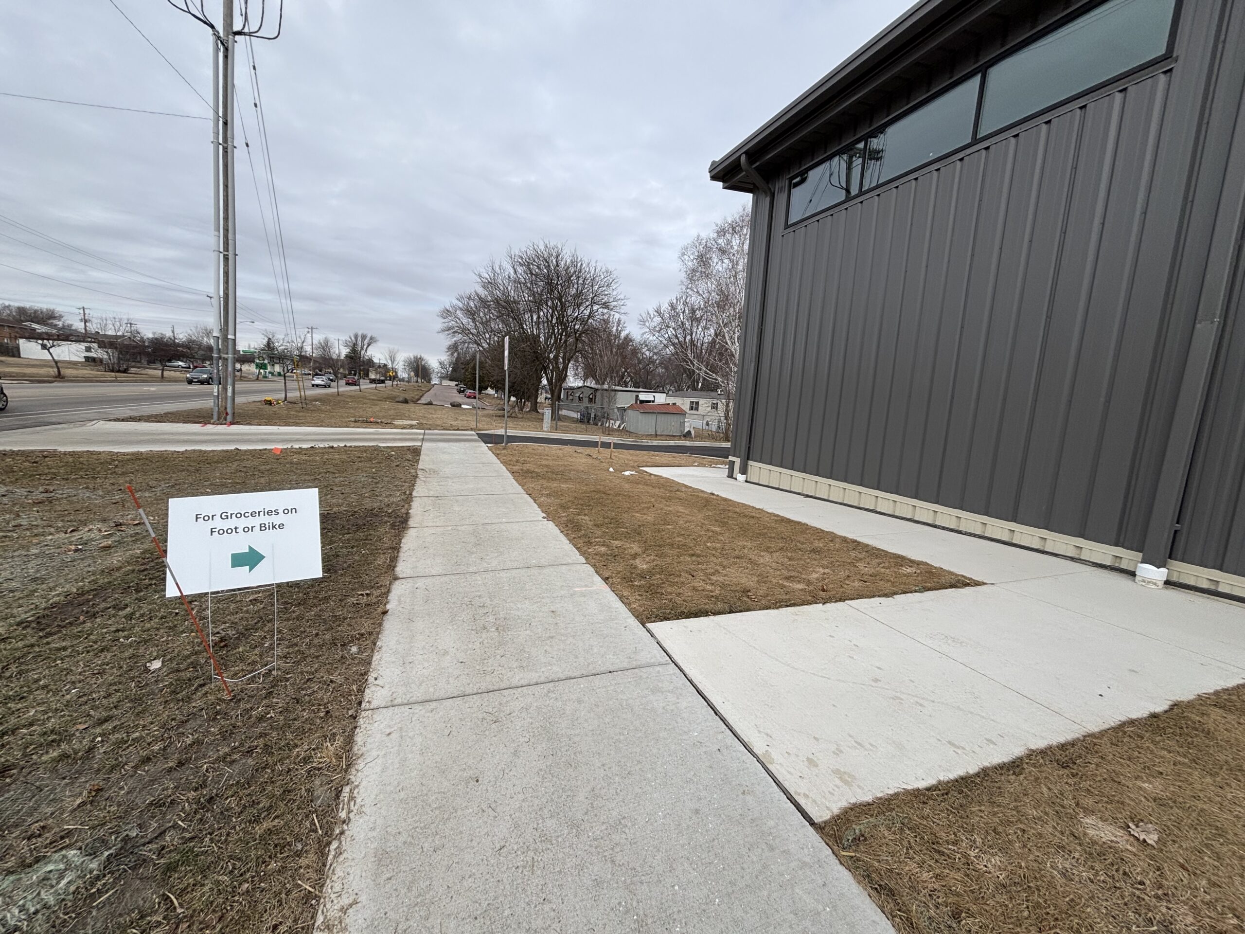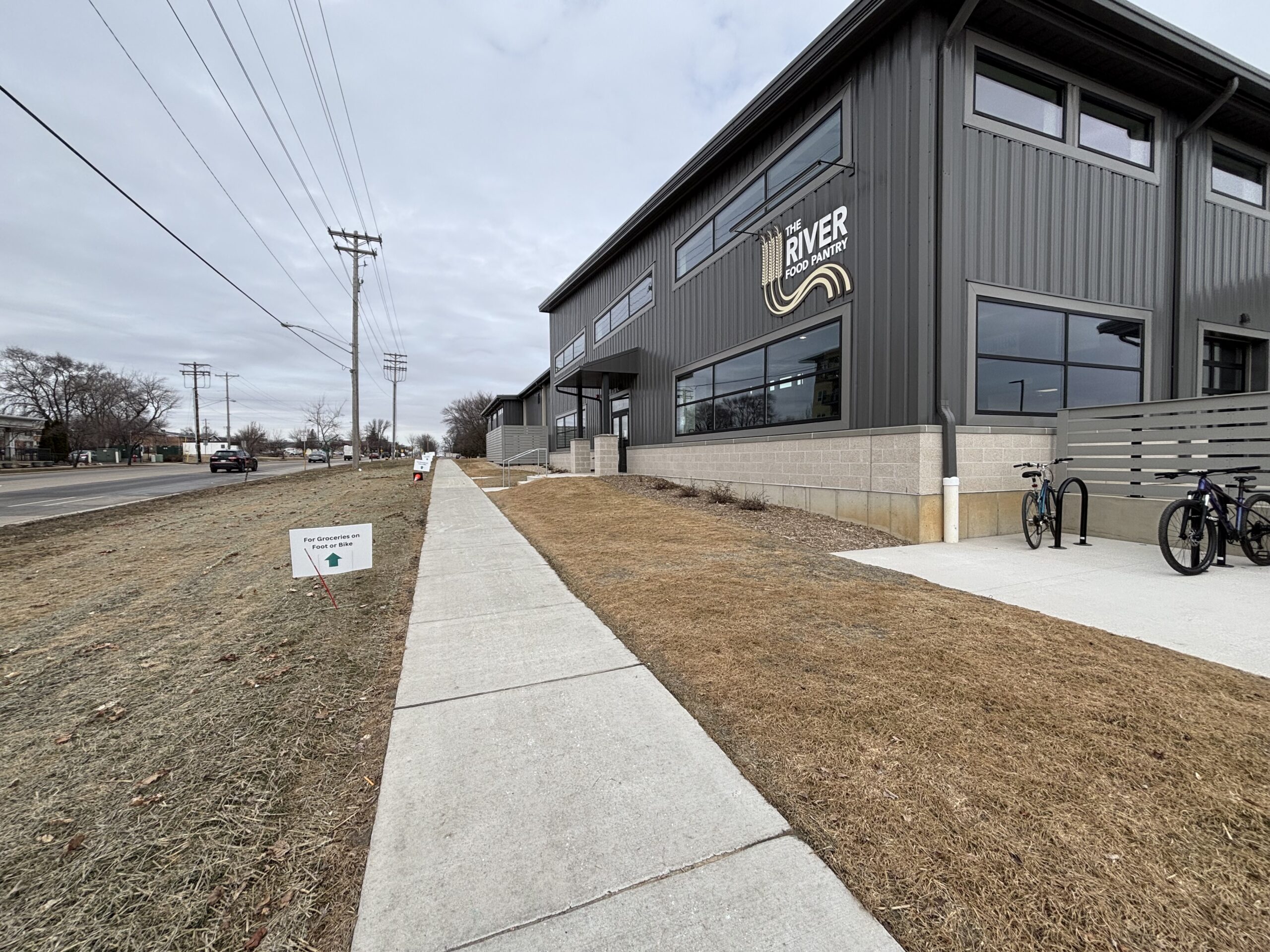 To pick-up groceries and Family At-Home Meals on foot or bicycle, follow the directional signs along the Packers Ave. side of the building and enter the door for walk and bike-up traffic near where vehicle traffic exits the drive-thru bays. Come in the door and one of our friendly volunteers will greet and serve you there.